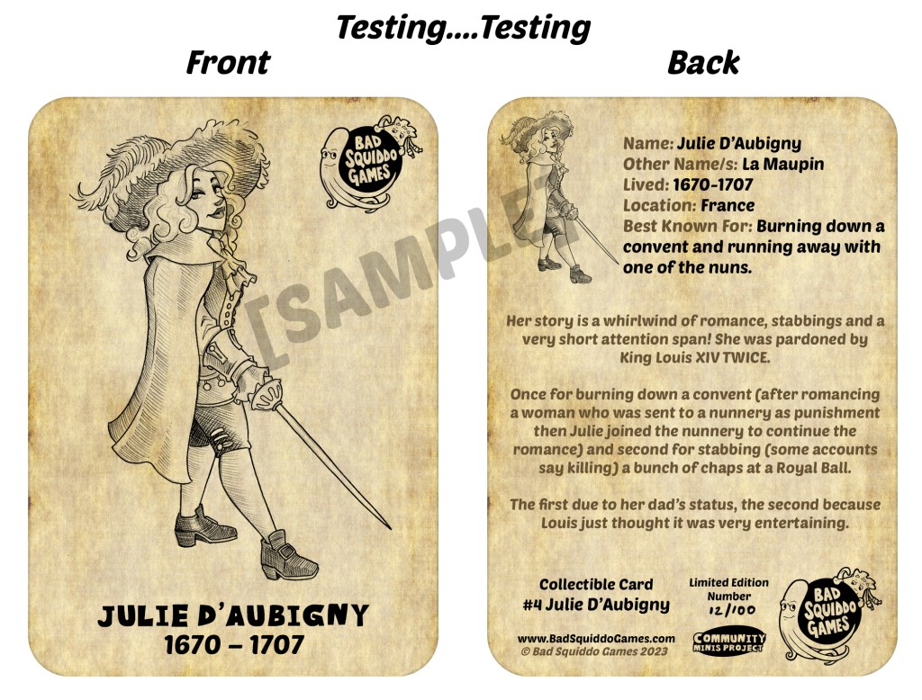 Wave 1 is out and anyone can buy, there’s a few of the collector cards left too (Eleanor of Aquitaine, Ching Shih, Harriet Tubman, Black Agnes, Zenobia, Julie D’Aubigny)