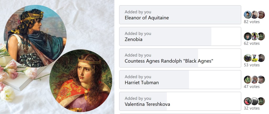 The first six. Julie D’Aubigny, Eleanor of Aquitaine, Ching Shih, Black Agnes, Zenobia and Harriet Tubman. All shipped!
