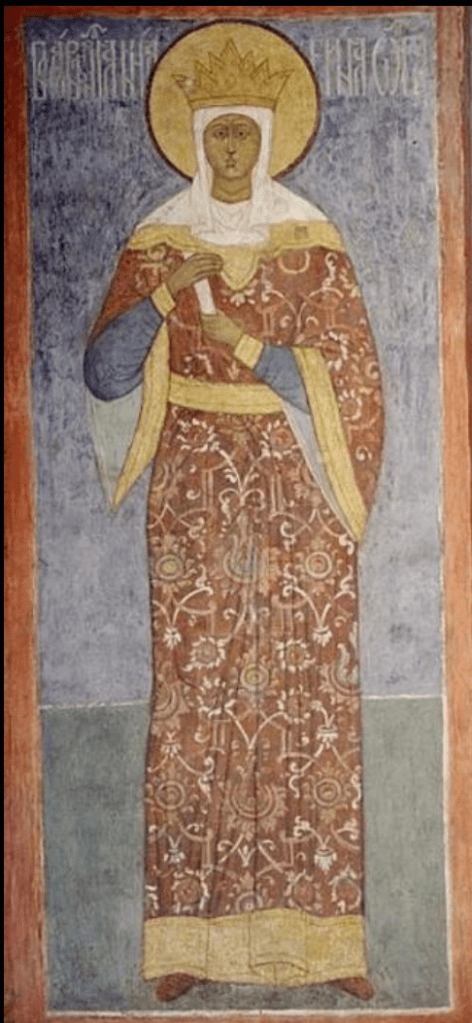 Olga’s birth date is unknown, estimated to be between 890 and 925 CE and she lived until 969 CE in Kyivan Rus’. This was an area which covered areas now called Ukraine, Western Russia and Belarus. While young, she was married to Prince Igor of Kyiv, and following his death, took control as regent until their son Sviatoslav was of age.